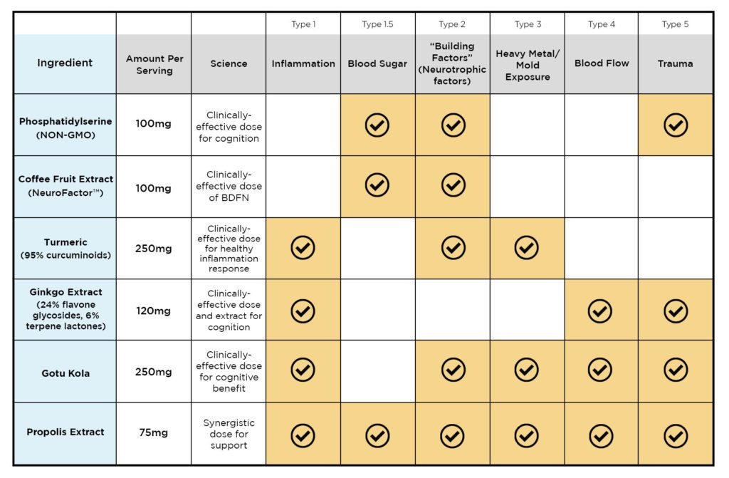 These contributors, and the processes at play in each, were used to develop the NeuroQ formula. The ingredients and therapeutic doses found in NeuroQ address each of these potential risk factors when used preventatively.