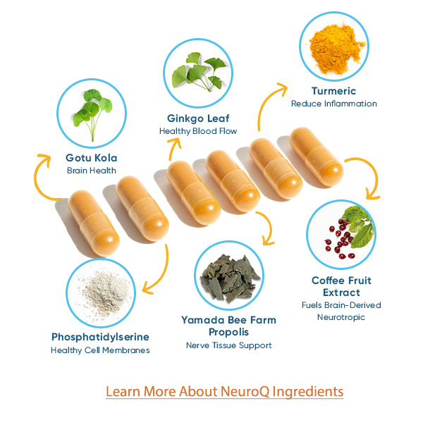 The NeuroQ formula was thoroughly researched and carefully constructed with effective, therapeutic doses of ingredients that work together to create the optimum environment for your brain health.